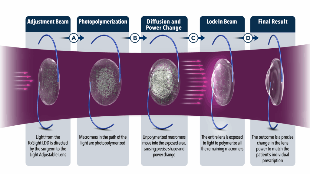 The Light Adjustable Lens (LAL) is the only lens that can be customized after surgery. Once your eye has healed, your doctor uses a special light treatment to fine-tune the lens power, giving you the sharpest vision possible for your unique eyes.